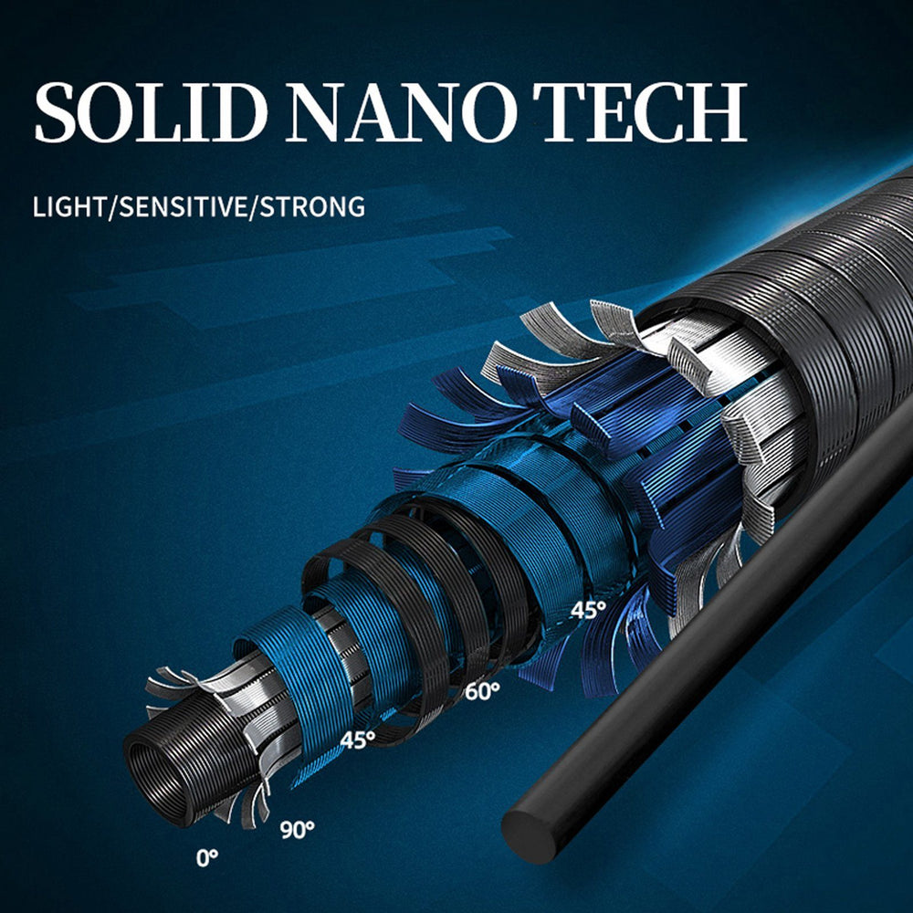 Most of solid rod is made of nano & high-ton toray carbon fiber, so usually solid rod is more lighter than hollow rod.You never feel tired when you play for a long time.